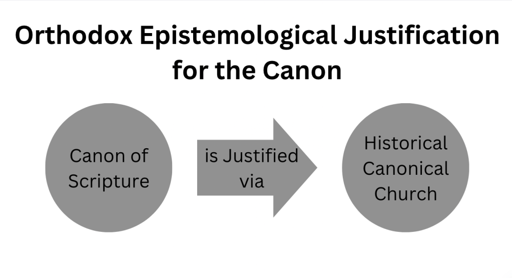 Another question in epistemology is asked in order to provide justification for the epistemological deduction of the said Protestant or Orthodox. This is a separate question from justification of the Canon of Scripture. Which is confused by Peckham on his critique of Sacred Tradition.